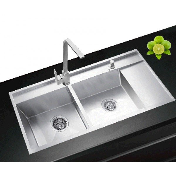 Chậu có kích thước 820 x 450 mm, chiều sâu lòng chậu 230 mm, độ dày thành chậu 3,5 mm. Thiết kế 02 hộc rộng rãi dễ dàng sử dụng. Đáy chậu còn thiết kế tránh ngưng tụ nước, không đọng nước giúp thoải mái trong công tác dọn rửa.